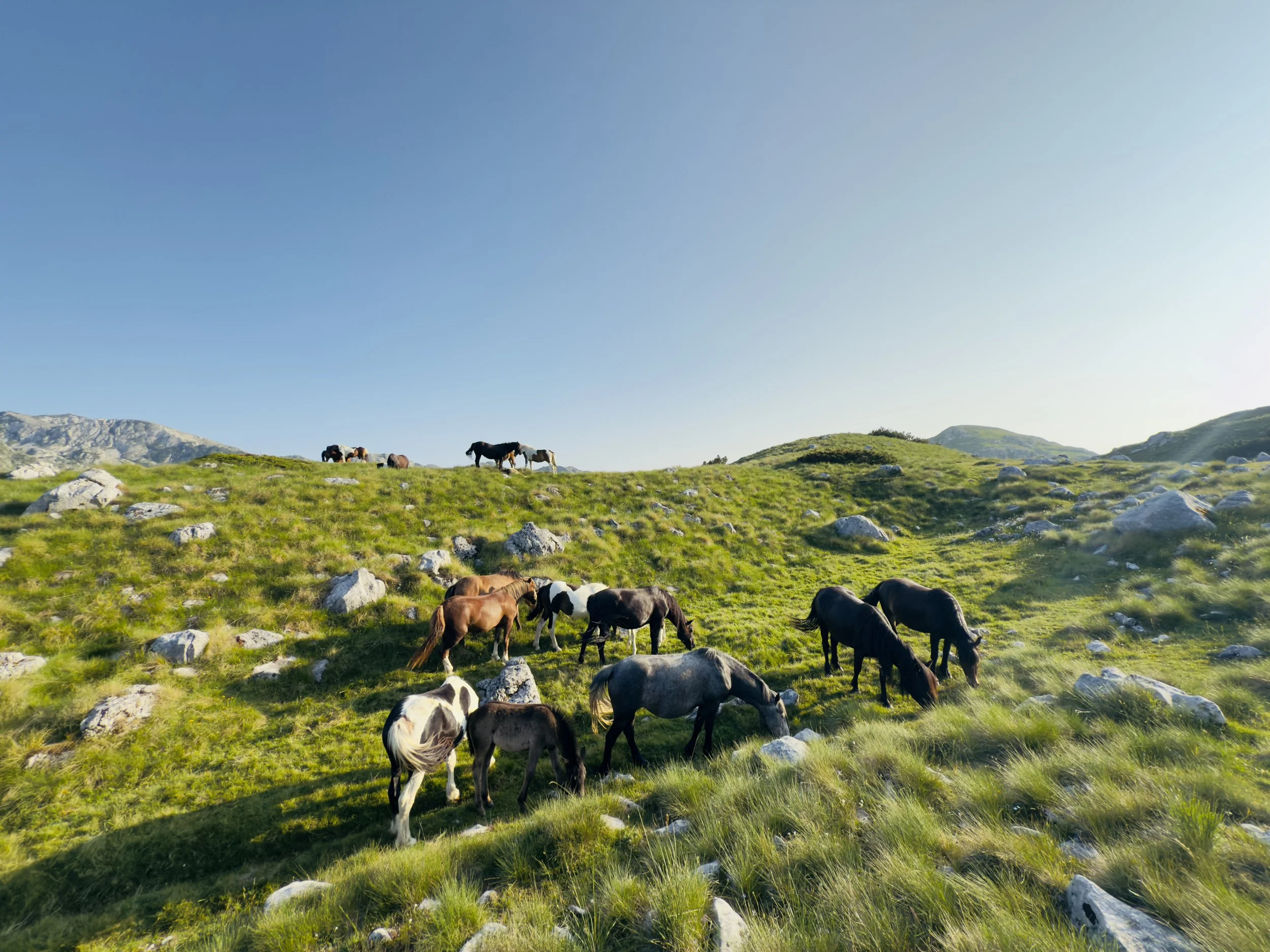 Durmitor National Park in Montenegro completely took me by surprise. Towering peaks, wide open meadows and an insane wildlife encounter I’ll never forget. While finishing up a at a hiking location one afternoon, I came across a herd of wild horses with foals. They were calm enough to let me film them up close for quite some time. It was one of those moments you could never plan for, which made it all the more special.